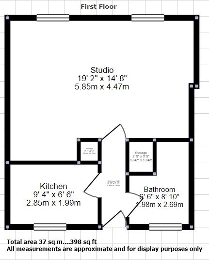 Vinyl flooring, single radiator, two storage cupboards. Access to separate bathroom, Studio / living area and separate Kitchen, .