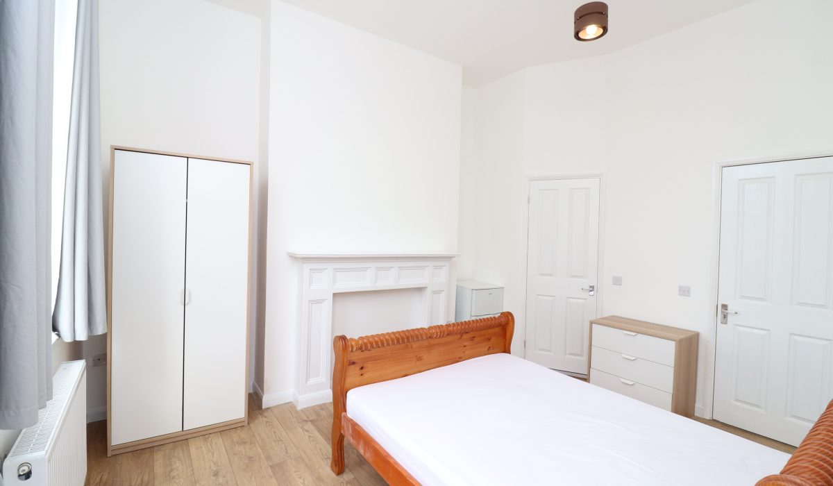 Laminate flooring throughout, single radiator, various power points, wardrobe, double bed, chest of drawers, light fittings, various power points and front aspect sash windows.
