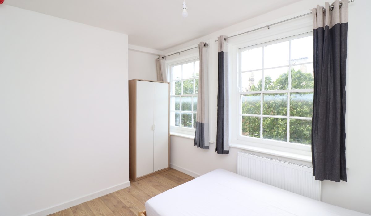Laminate flooring throughout, single radiator, various power points, wardrobe, double bed, chest of drawers, light fittings, various power points and front aspect sash windows.