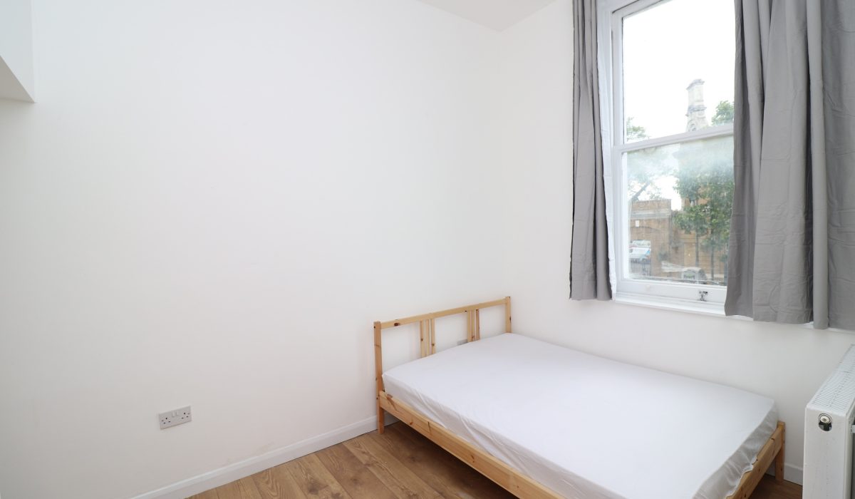 Laminate flooring throughout, single radiator, various power points, wardrobe, double bed, chest of drawers, light fittings, various power points and front aspect sash windows.