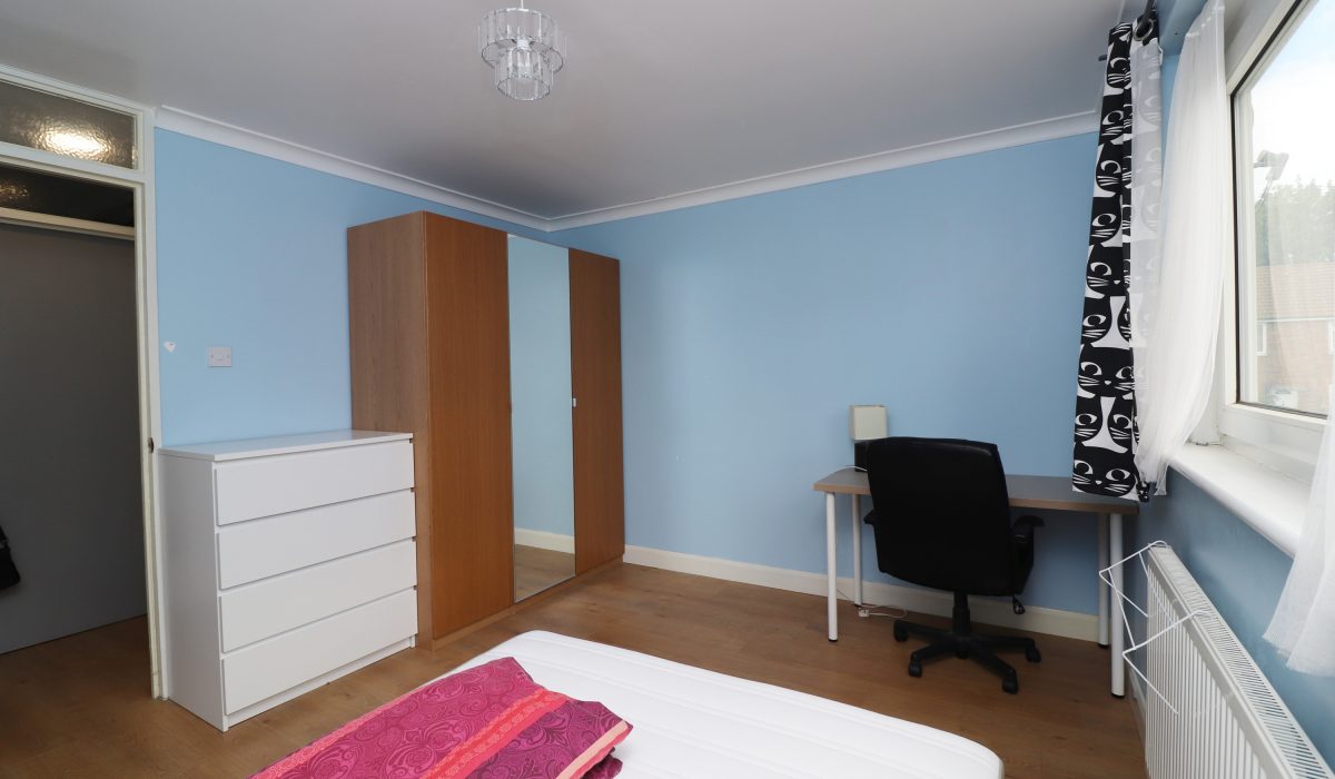 Laminate flooring throughout, radiator, various power points, wardrobe, double bed, chest of drawers, light fittings, various power points.