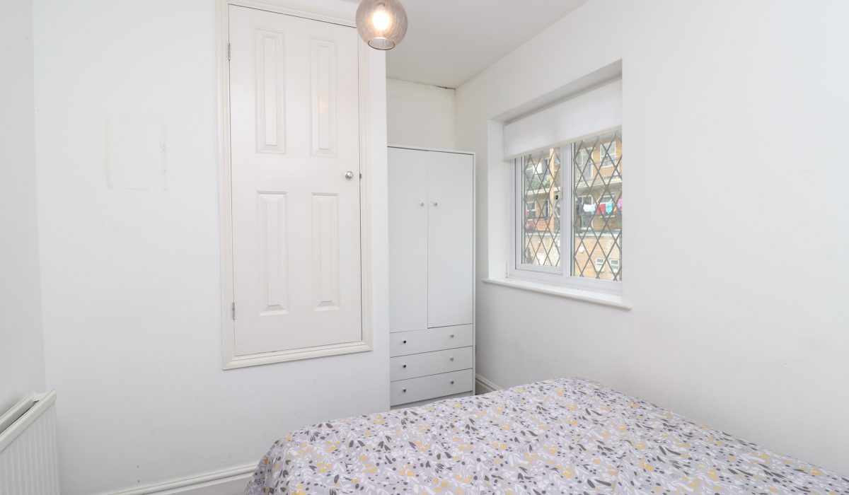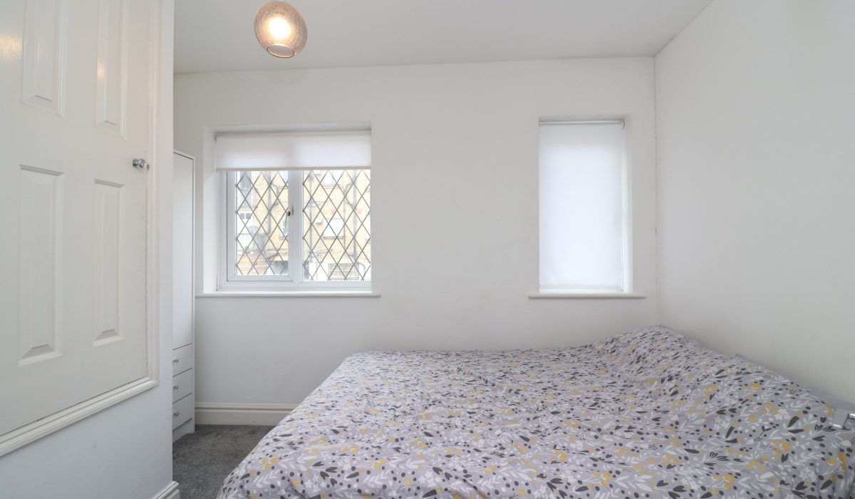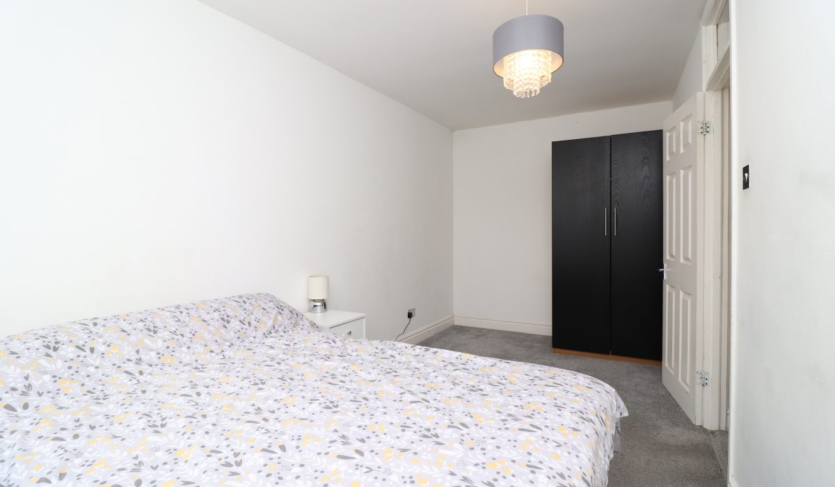 Carpeted flooring, double bed, wardrobe, single radiator, rear aspect double glazed windows, various power points and light fittings.