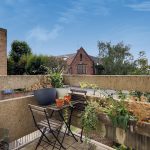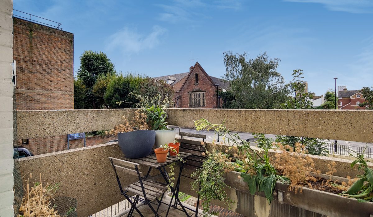 South West facing balcony with perfect suntrap. It has space to accommodate tables and chairs. As well as overlooking Jon Square gardens and the local vicarage.