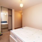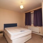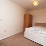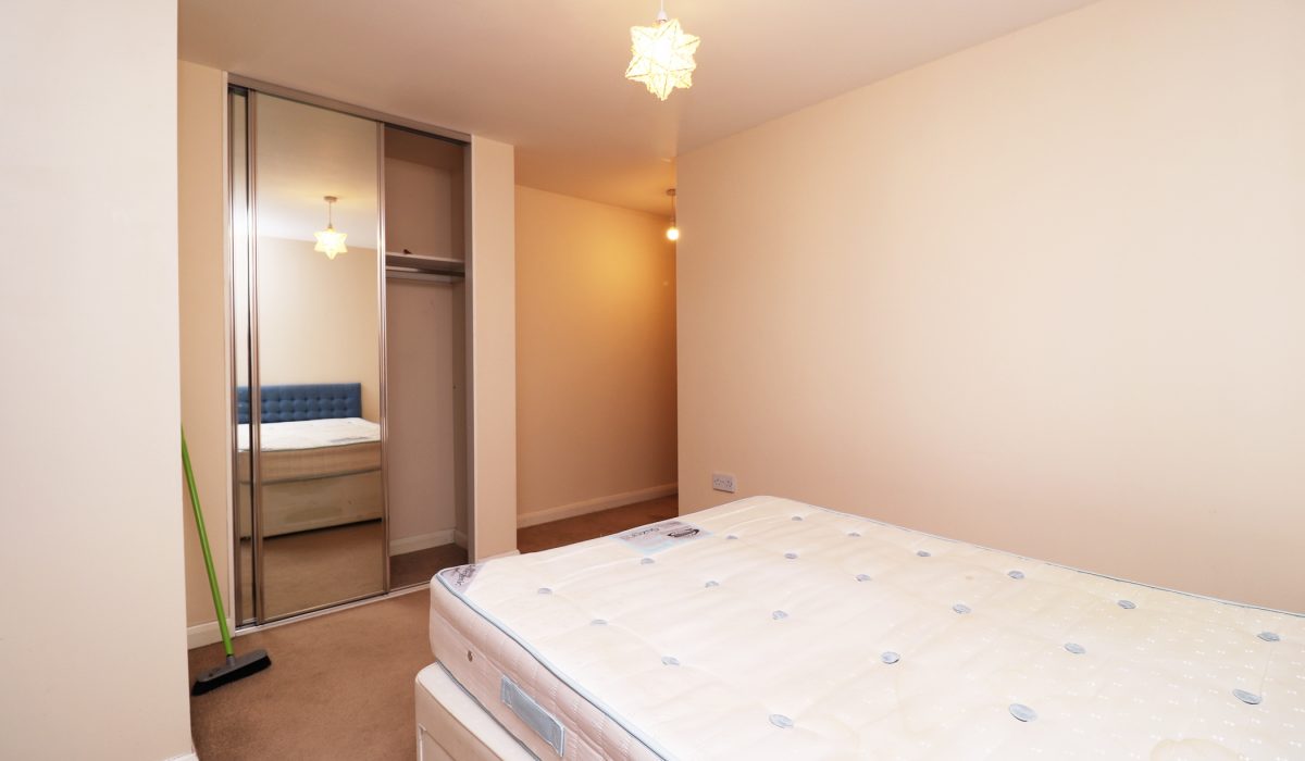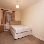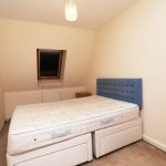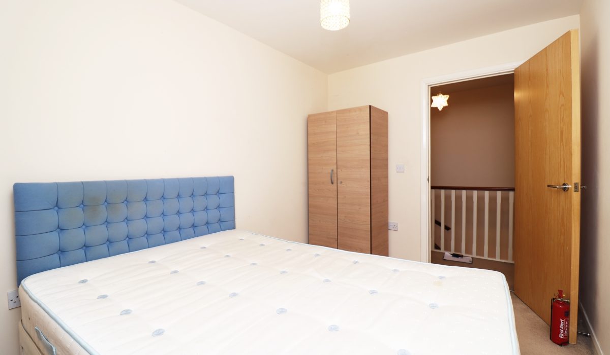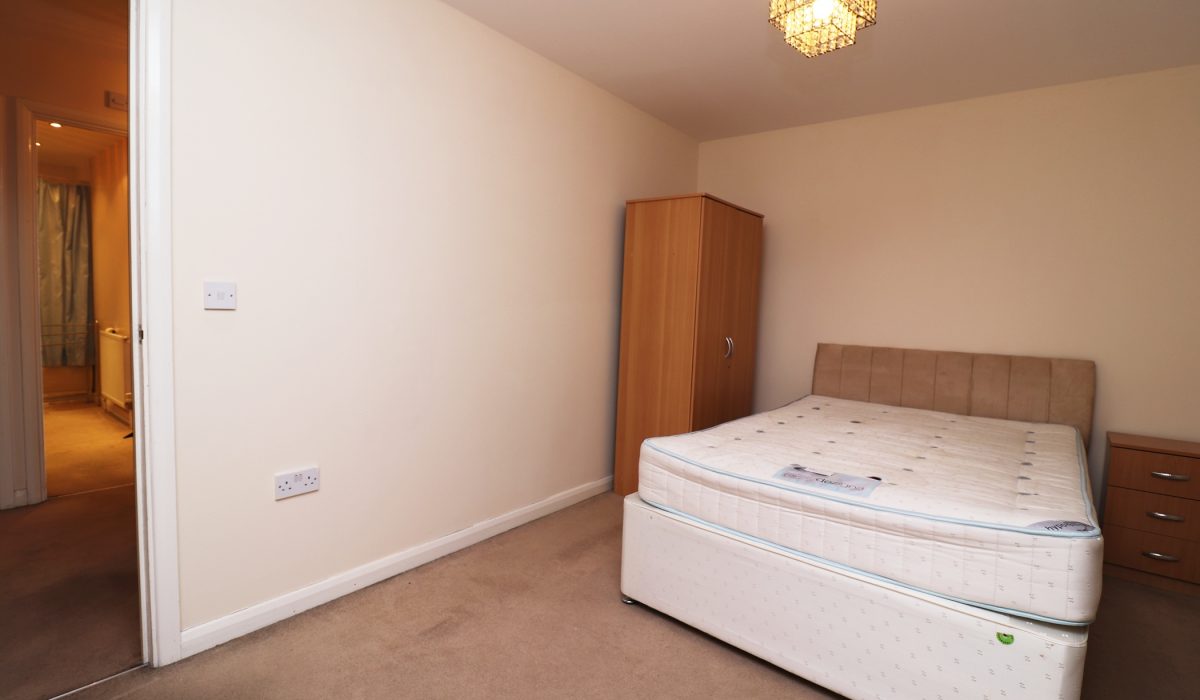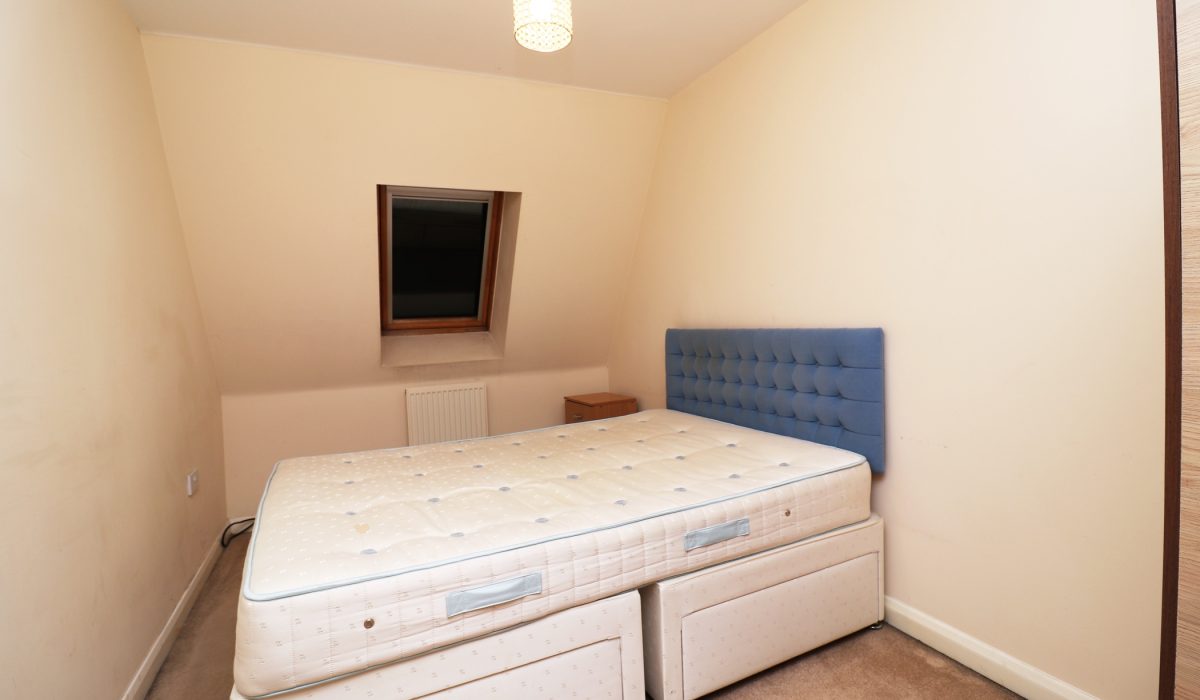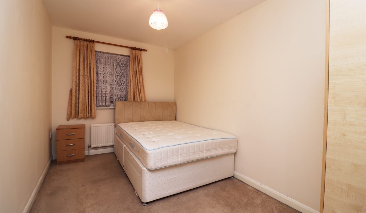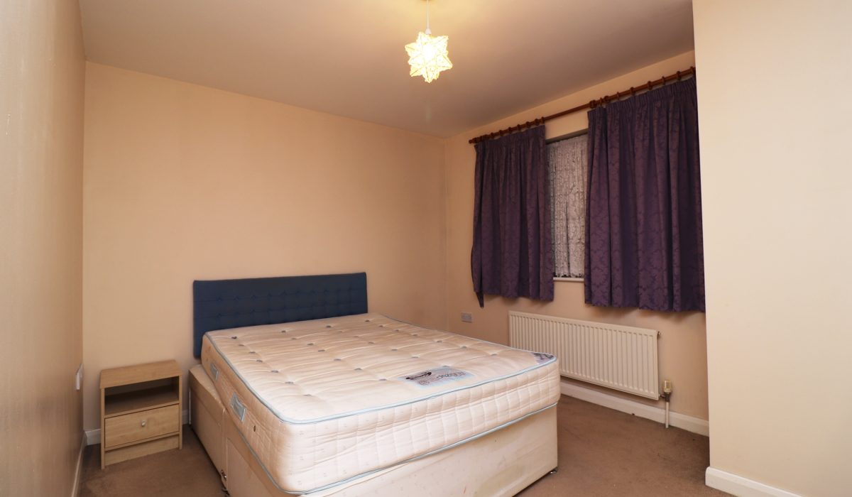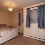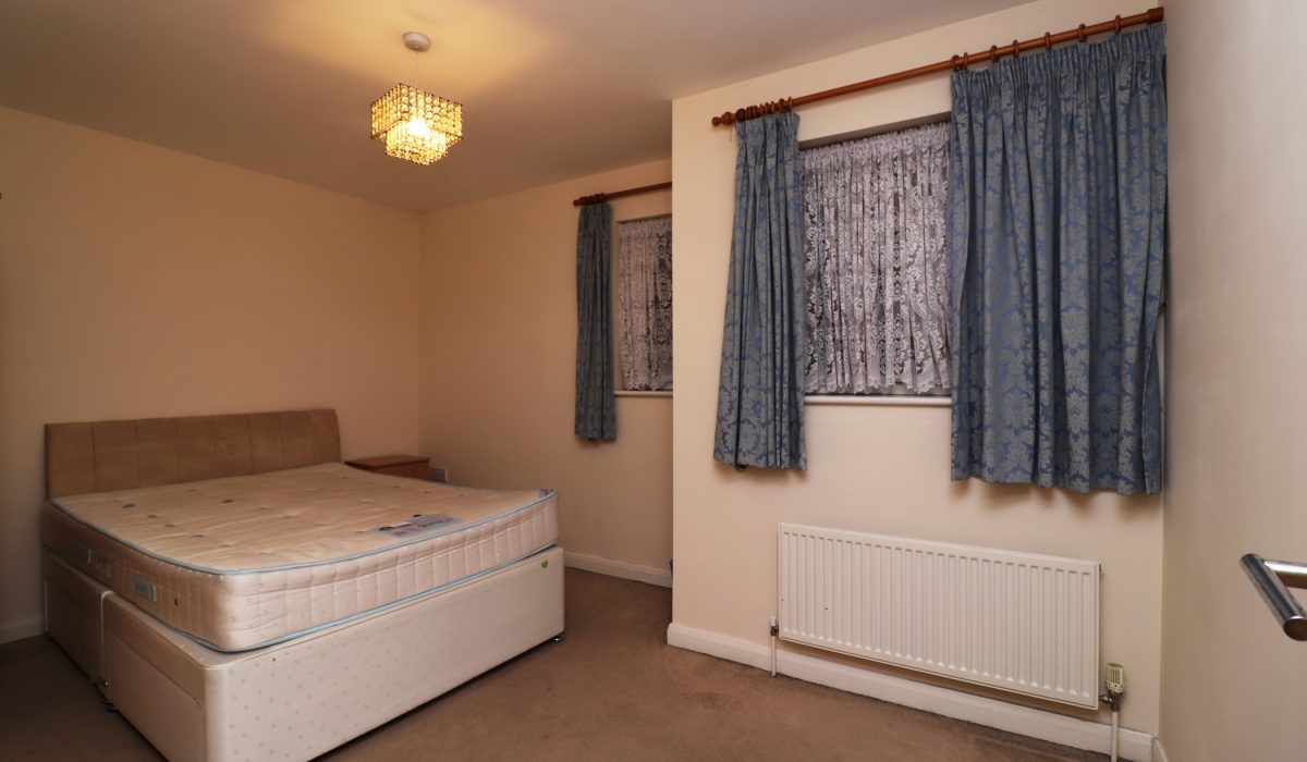Carpeted, double bed, small chest of drawers, double radiator.