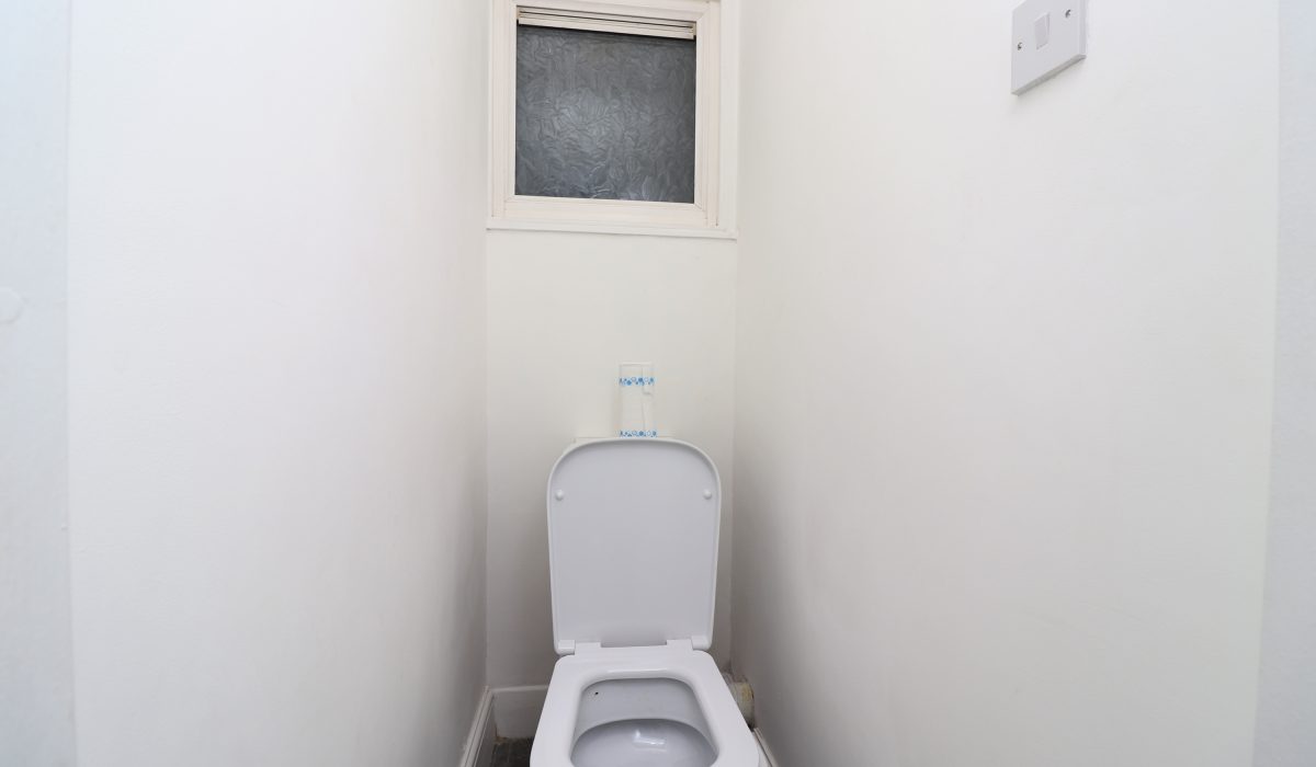 Tiled flooring, front aspect double glazed windows, and toilet with low-level flush