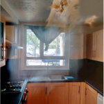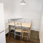 Integrated oven with gas cooker and extractor fan. Various eye and base level units. Washing machine, laminate flooring, stainless steel sink with mixer taps, various power sockets. Large enough to dine in with dining table and chairs.