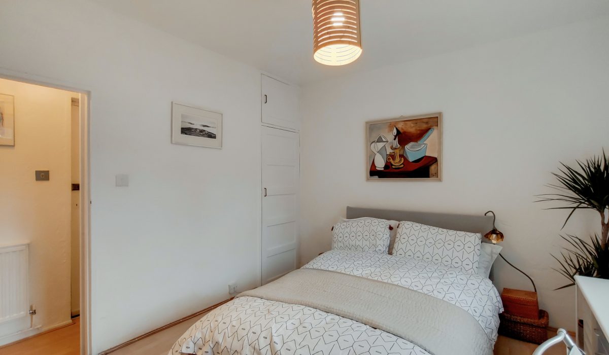 Wood laminate flooring throughout, radiator, built-in storage cupboard, various power points, double glazed window, light fitting.
