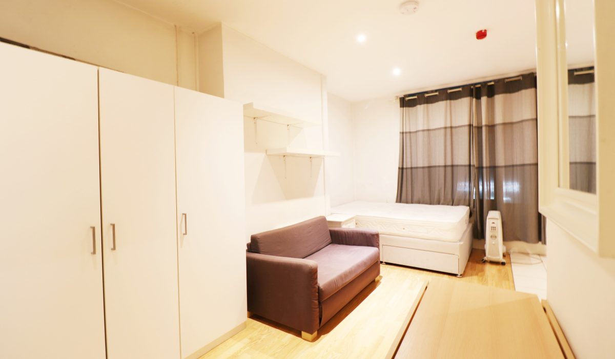 Double bed, laminate flooring, 2 seater sofa, wardrobe, radiator, various power points, light fittings, double glazed window.
