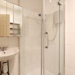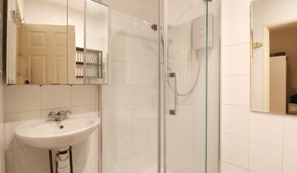 Fully tiled, walk-in shower, wash hand basin with mixer taps and under sink storage, low level flush WC, chrome heated towel rail, light fitting, extractor fan.