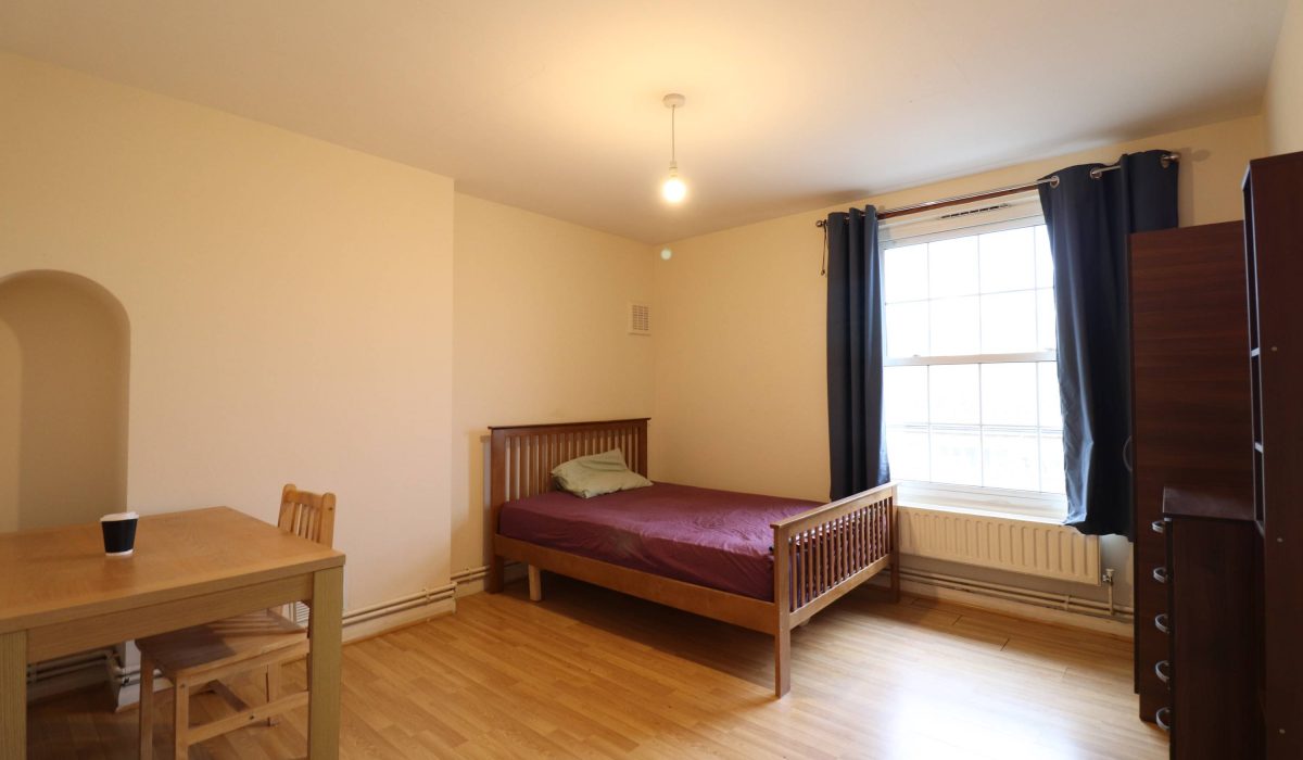 Located in one of London’s most sought after postcodes is this spacious 5 bedroom apartment on the fourth floor of this purpose-built block. Located moments away from Bethnal Green (Central Line) Underground tube station. This bright and airy property with neutral decor throughout comprises a spacious lounge, a fitted kitchen with breakfast area, 2x three-piece bathrooms, double glazed windows and wood laminate flooring throughout.