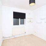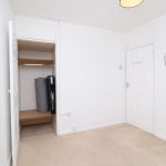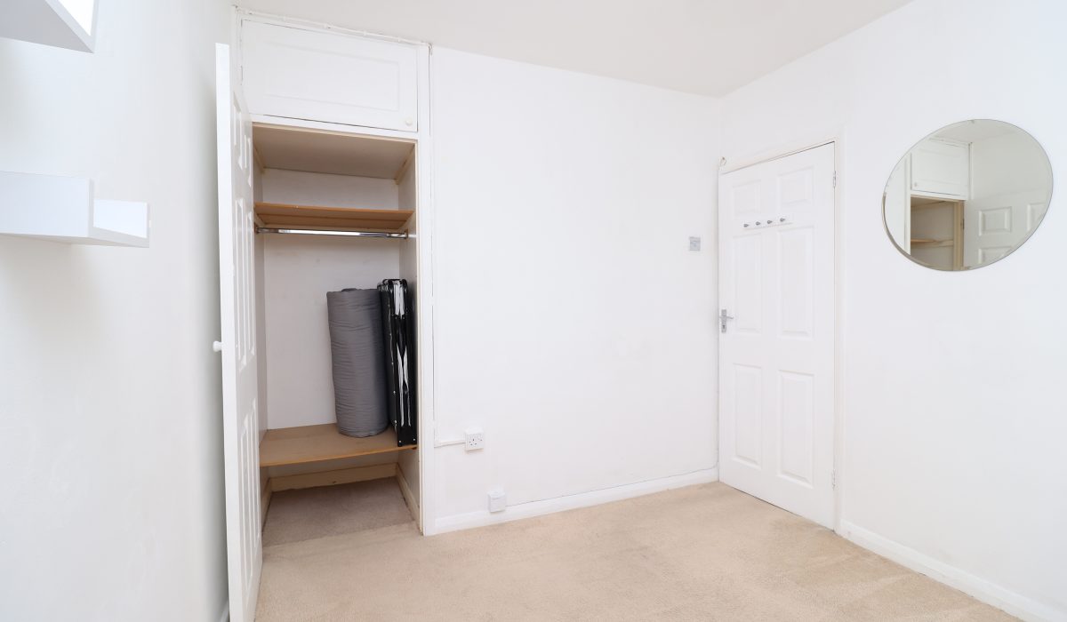 Laminate flooring, single radiator, front aspect double glazed windows overlooking Haggerston Park, shelf fittings, built-in cupboard. Various power sockets and a light fitting.