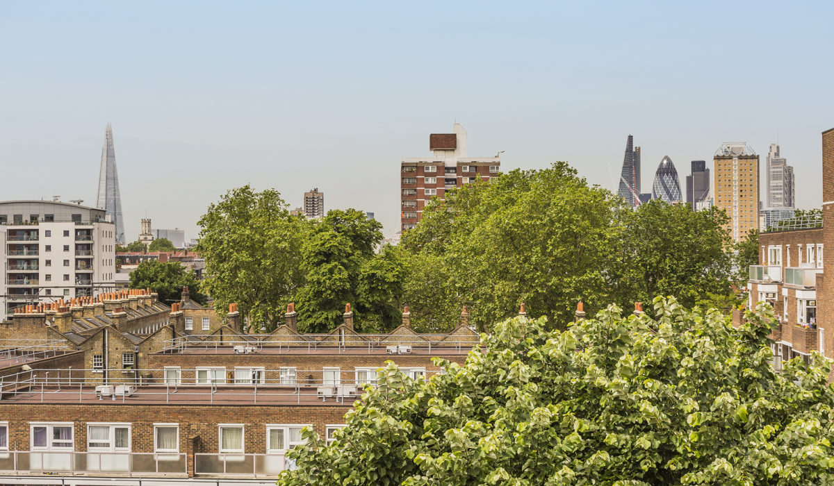 This 2 double bedroom top floor flat has been recently refurbished. Finished to an excellent standard in our opinion, it features stunning views of the London skyline, west facing aspect, with views of The Shard, the Gherkin Building, and views of Canary Wharf from the bedrooms. Fully double glazed, the property allows for an abundance of light and has an airy feel. Both bedrooms are double in size with a spacious reception. The modern kitchen features an integrated gas cooker and space for a washing machine, dishwasher and a fridge. It features a modern bathroom, separate toilet, and several in-built storage cupboards.