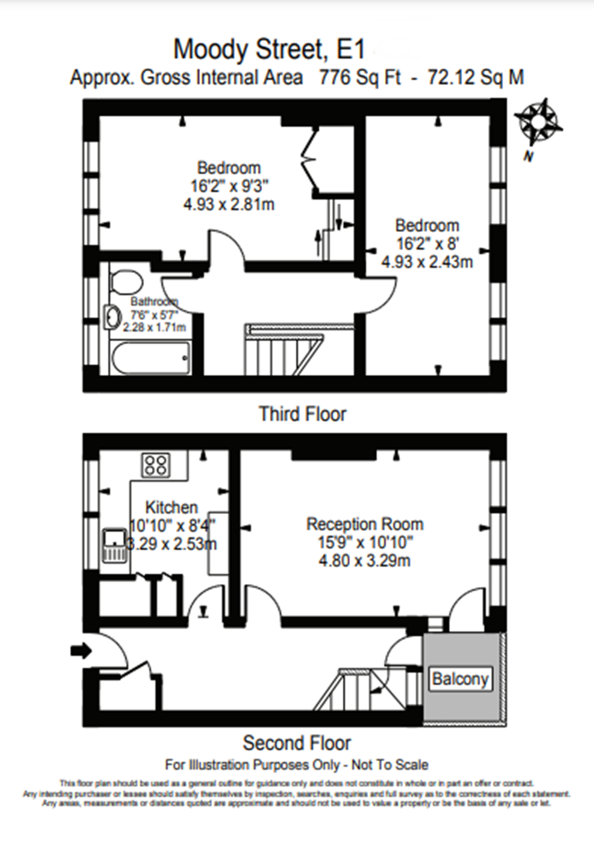 Bedroom 2: 16’2 x 9’3 (4.93m x 2.81m):