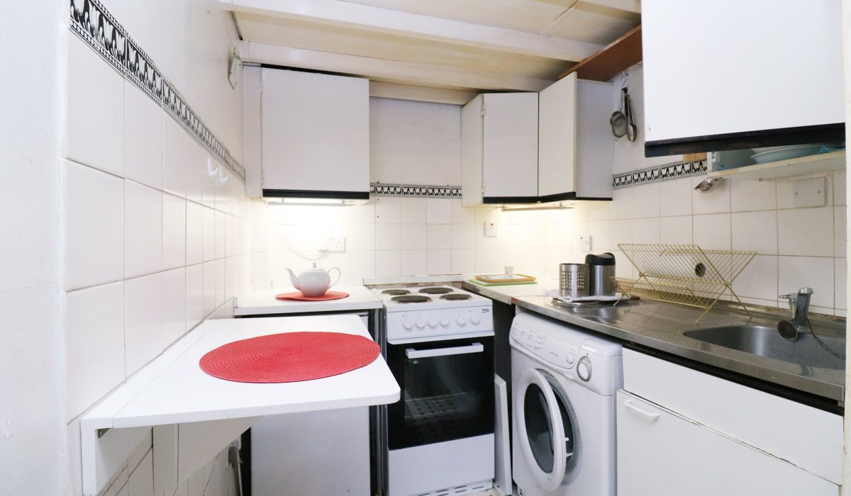 A bright studio flat with high ceilings, located in this 1930s purpose-built block within Belsize Grove. The studio flat is well decorated throughout with a separate kitchen, including a washing machine and fridge-freezer, a separate three-piece shower room.