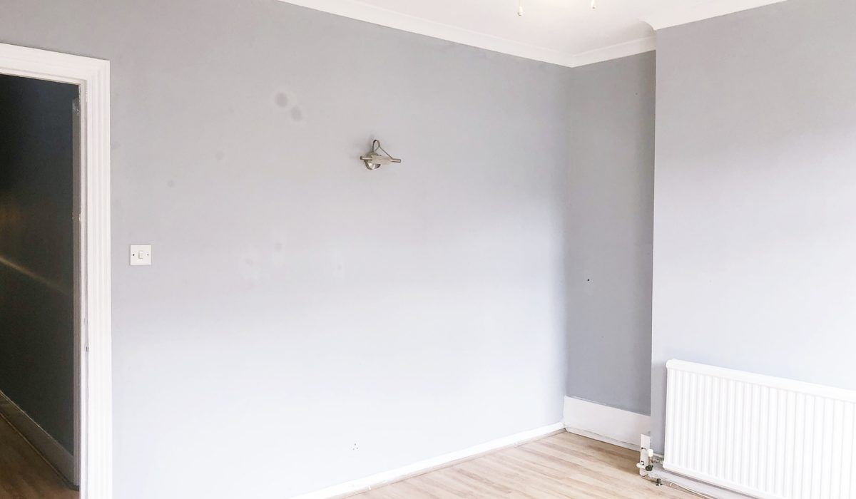 Laminate flooring, light fitting, various power sockets.
