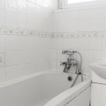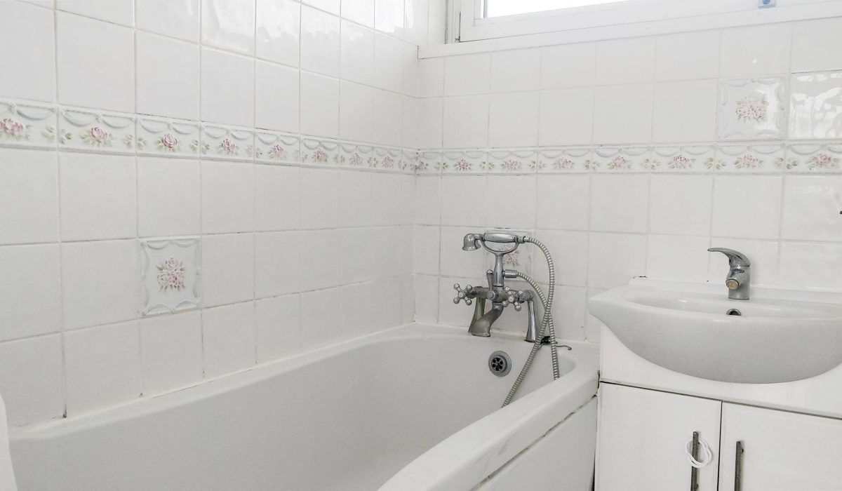 Two-piece bathroom, part tiled walls, tiled flooring throughout, bathtub with mixer taps and shower attachments, rear-aspect double glazed windows, wash basin with mixer taps and double radiator.