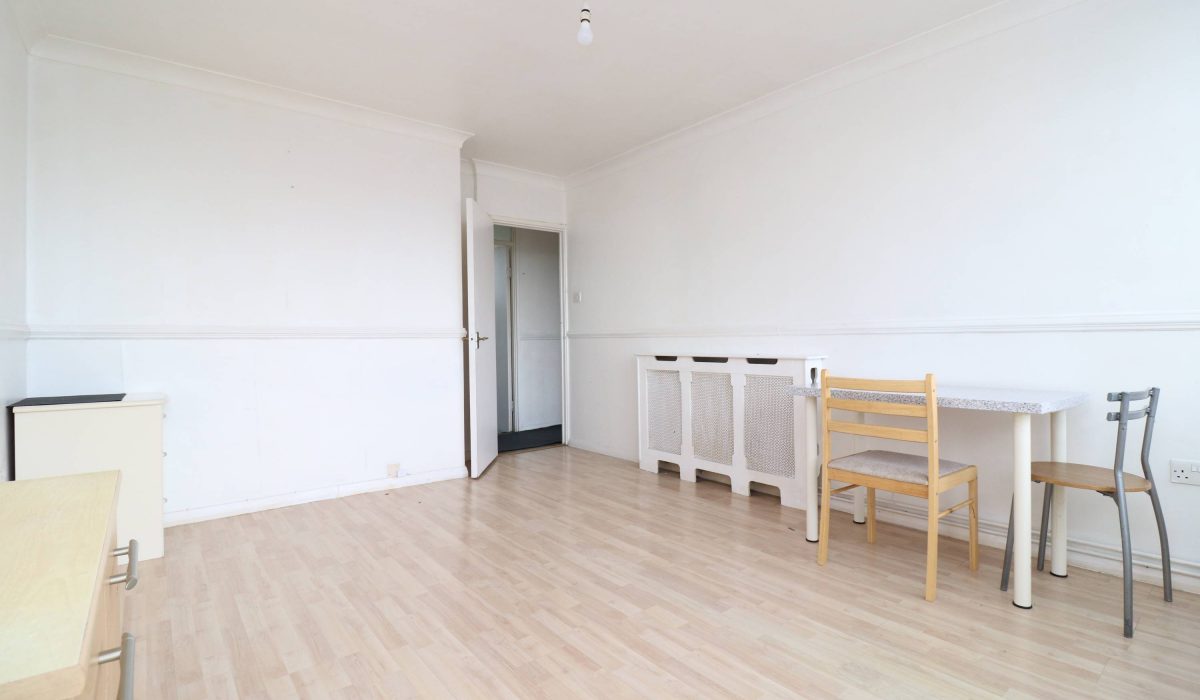 Beech-effect laminate flooring, dado rail, various power points, TV satellite point, double radiator, front-facing windows and a door leading to a balcony with direct views of Canary Wharf.