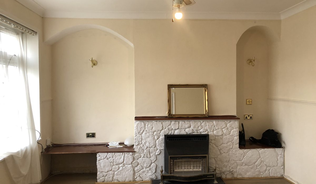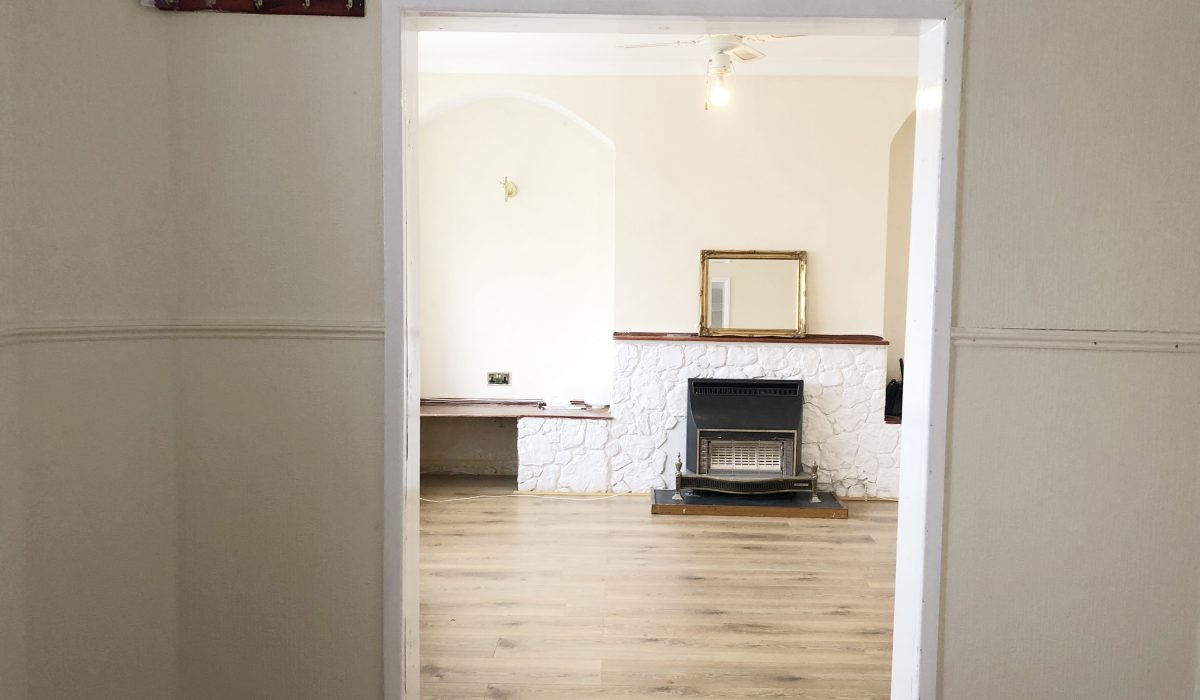 Laminate flooring, double glazed windows, fire feature.