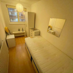 Laminate flooring, double glazed window, various power sockets, double radiator, desk and chair, chest of drawers 2 door wardrobe.