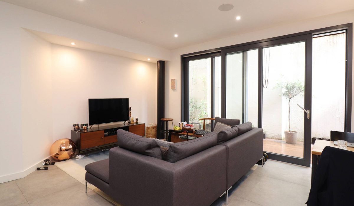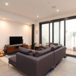 Tiled flooring, underfloor heating, floor to ceiling double glazed rear aspect sliding doors that lead to private patio garden, L-shape sofa, tv stands, dining table and chairs and various powerpoints.