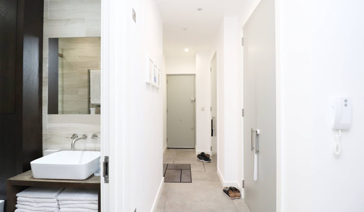Underfloor heating, spotlights and 2 built-in cupboards.
