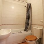 Tiled walls throughout, bathtub with shower attachments, washbasin with separate hot and cold taps and W/C.