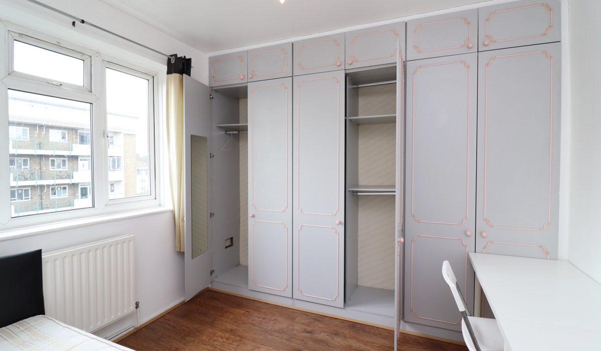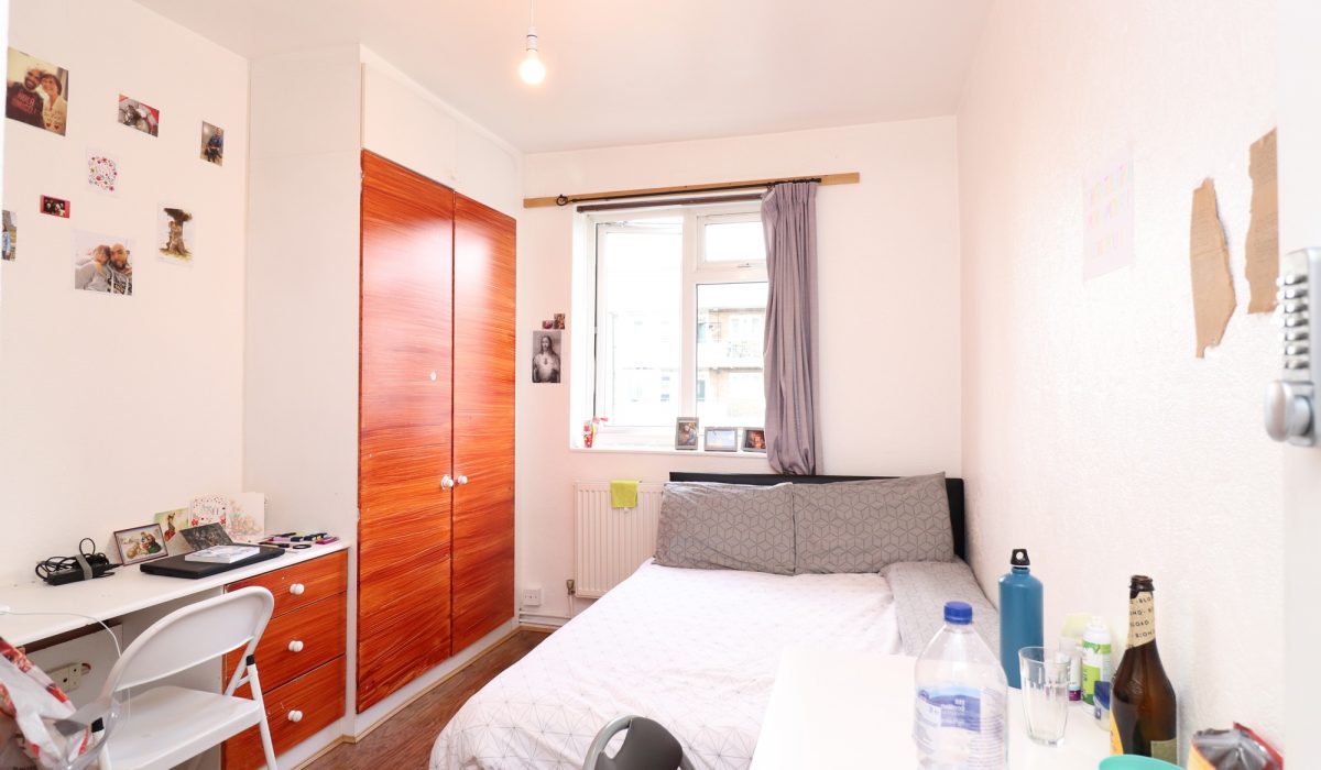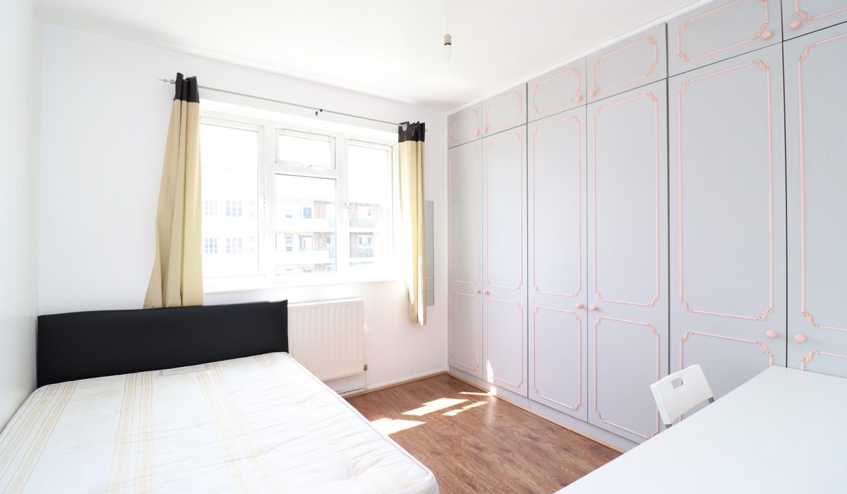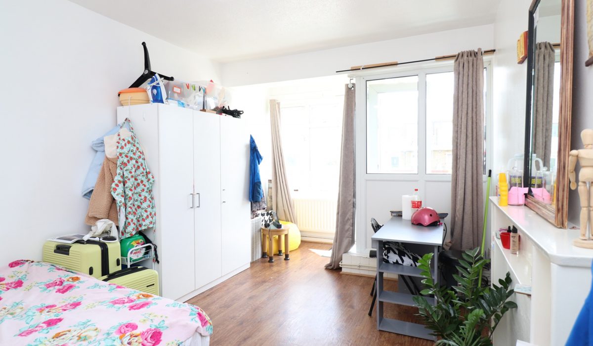 This lovely, spacious 3 double bedroom flat (no lounge) is positioned on the fourth floor and right on the doorstep of Queen Mary University. It is also between Mile End and Stepney Green tube stations and close to Mile End Park. The flat has access to a separate bath and toilet. In addition it has a private balcony overlooking the area. The kitchen is in good condition with a built-in oven and plenty of storage space.