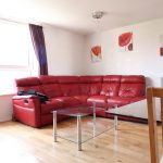 Wood flooring, 5-seater leather sofa, 2x coffee tables, tv stand, dining table and chairs, double glazed windows.