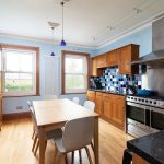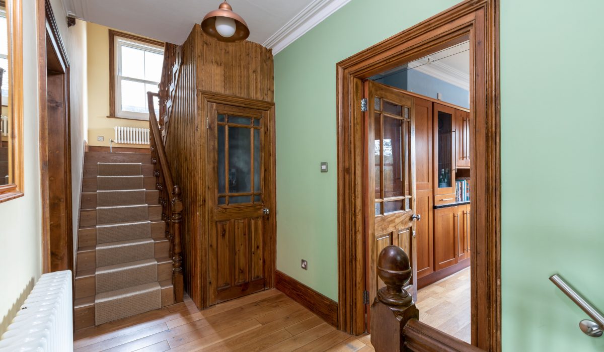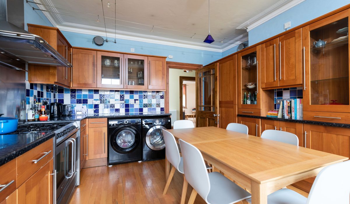 Large enough to dine in and entertain guests. Wooden flooring, a range of wall and base units, stainless steel sink with drainer and mixer tap, freestanding 5 ring gas hob and oven with extractor hood, 2 rear aspect sash windows, designer vertical radiator.