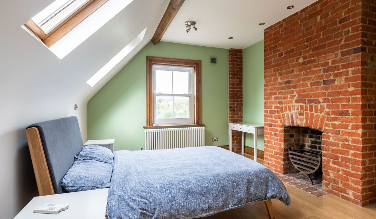 Wooden flooring, cast iron fireplace within an exposed chimney breast, side aspect double glazed roof windows and rear aspect double glazed sash windows allowing plenty of light. Double radiator, various power points and light fitting.