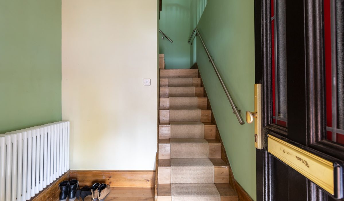 Own entrance, wide opening with hard-wood flooring, double radiator, staircase leading to first floor landing giving access to kitchen / diner, reception room, 4 piece bathroom suite and the cloakroom.