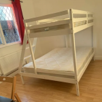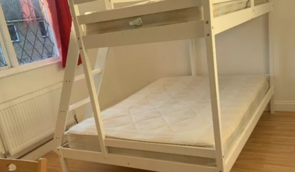 Laminate flooring, single radiator and various power sockets, bunk bed, desk and chair.