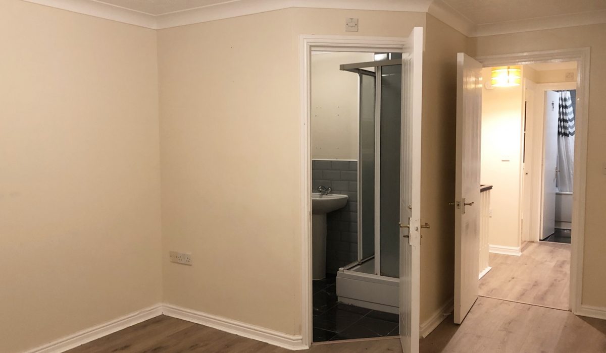 Master bedroom with en suite bathroom. Laminate flooring, front aspect double glazed windows, radiator.