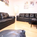 Three seater sofa, dining table, laminate flooring and various powerpoints