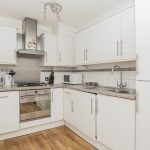 Would laminate flooring, partially tiled walls between kitchen units. Range of low level and eye level kitchen units. Integrated 4 ring gas stove with extractor fan, integrated fridge freezer, washing machine and dishwasher. Chrome finish hot/cold mixer tap attachment to sink basin. Various power sockets.